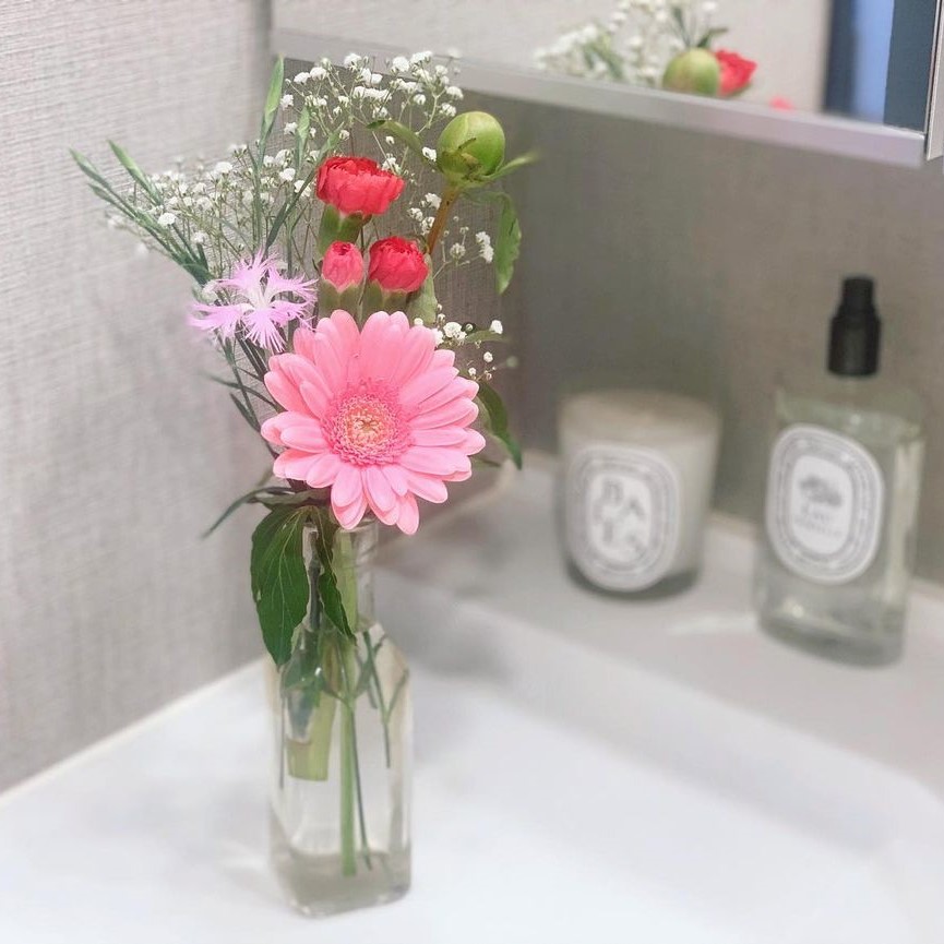 きれいなお花を飾ることで、殺風景だった部屋がパッと華やいで毎日のおうち時間が癒しに変わりました♪